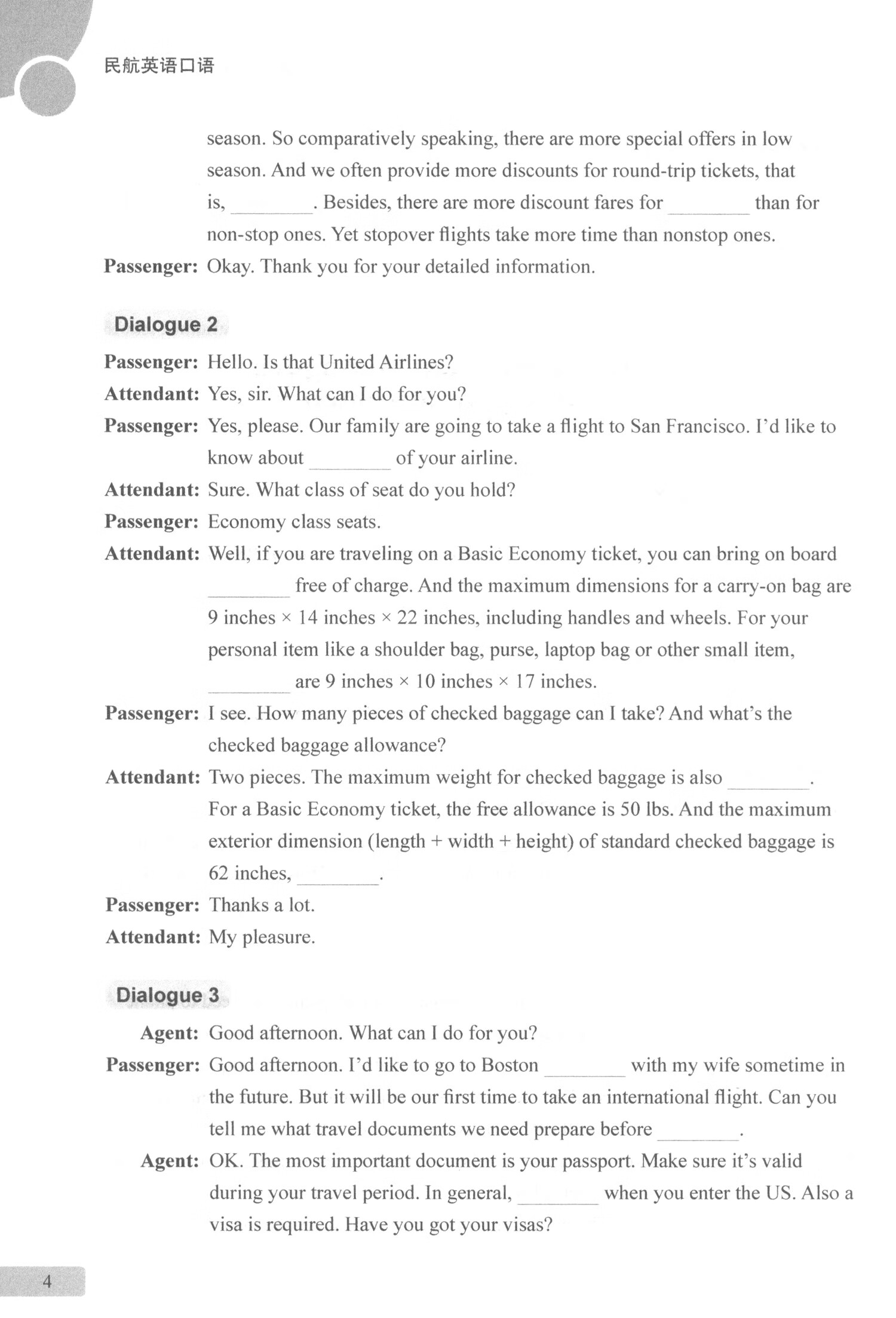 《民航英语口语》是为了帮助未来有出国留学、旅行计划或者有在民航领域就业倾向的英语专业本科生、非英语专业本科生、飞行学员、空乘学员、空警以及机场工作人员提升英语口头交际能力而编写的专门用途英语教材,旨在通过民航领域的核心词汇、金句、情境对话、实景体验、背景知识等教学内容,帮助学习者系统掌握民航服务英语口语知识,切实提高学习者的民航英语口头交际能力,使他们在国际旅行中或在工作岗位上能够熟练地运用英语进行交流。