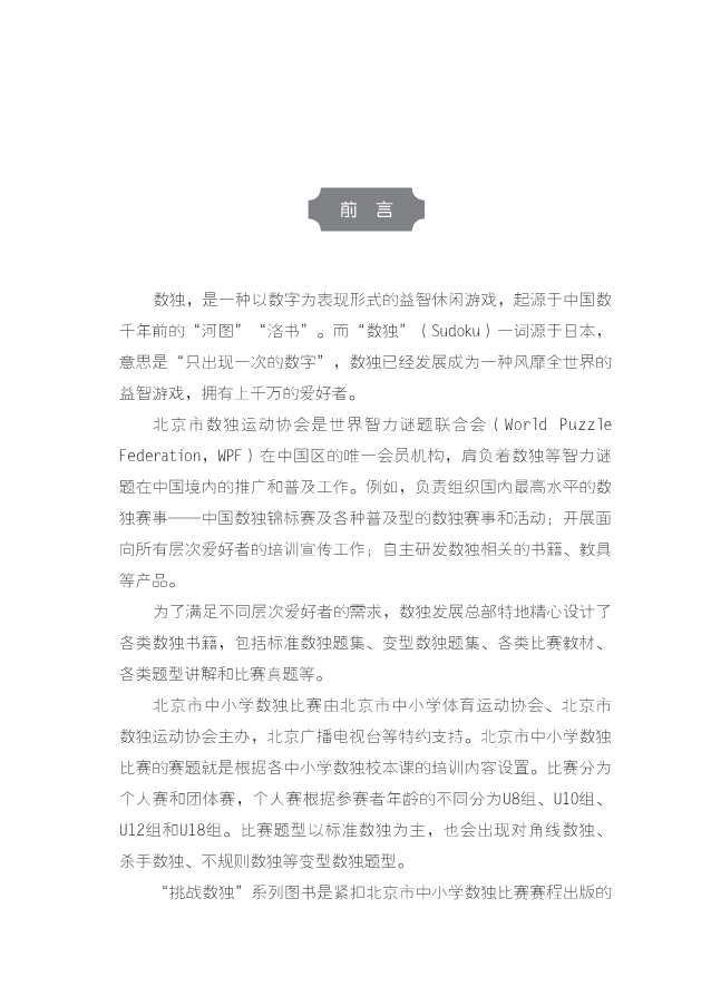 - [word 下载] 挑战数独(U8组)——2017、2018北京市中小学数独比赛题集 word格式电子书